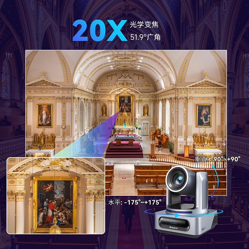 光学变焦:20倍高品质光学镜头,51.9°大广角
